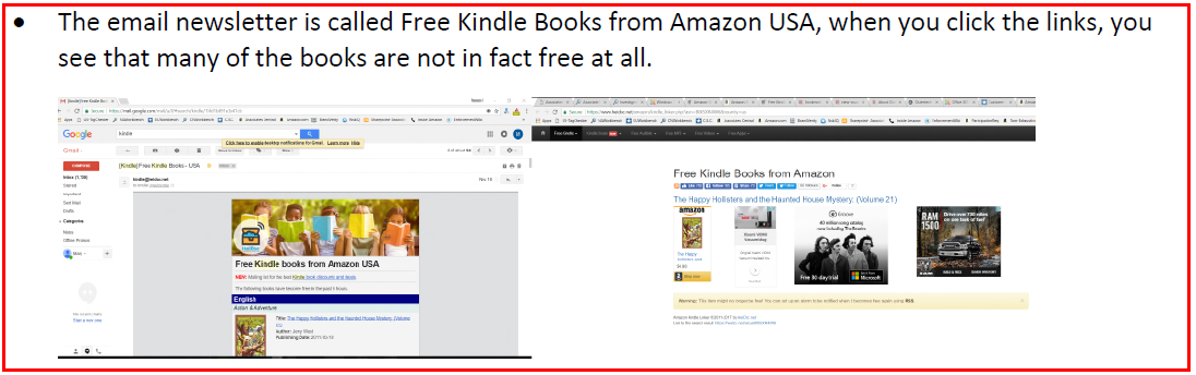 The email newsletter is called Free Kindle Books from Amazon USA, when you click the links, you see that many of the books are not in fact free at all.