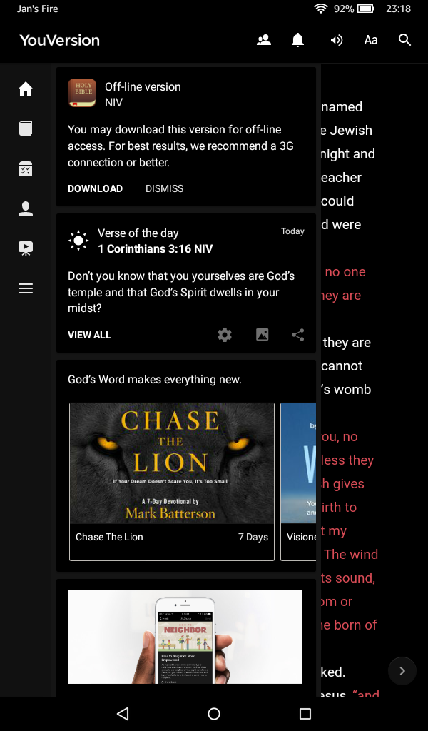 | Functions | Devotionals, Reading Plans, Bookmarks, Highlighting, Notes |