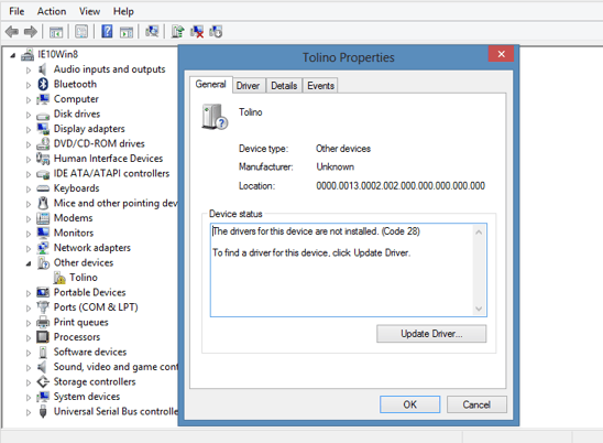 10. Verbinde den Tolino wieder mit dem PC. Öffne den Grätemanager in der Systemsteuerung. Falls das Gerät anders gelistet wird als im folgenden Screenshot, hat etwas nicht richtig funktioniert, und es geht zurueck zu Schritt 3.