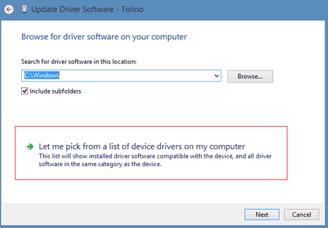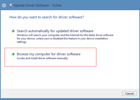 Treiber aktualisieren..., dann Auf dem Computer nach Treibersoftware suchen.