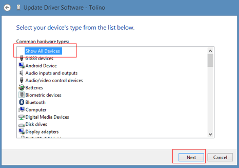 12. Wähle nun Aus einer Liste von Gerätetreibern auf dem Computer auswählen,