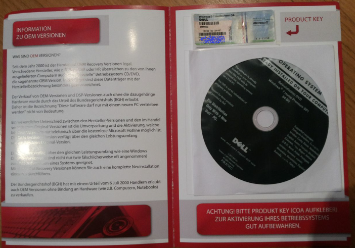 24. April 2014: Wir erhalten einen Brief mit einer offenbar gebrauchten Version von Windows 7 Home Premium, die ursprünglich von einem Händler aus Berlin stammt. Die Mappe des Händlers weist deutliche Gebrauchsspuren auf, enthält aber vorbildliche Informationen, was eine OEM-Version ist, und warum es legal ist, diese zu verkaufen und ohne zugehöriger Hardware zu nutzen. Es folgen nun einige Fotos des gelieferten Produktes.