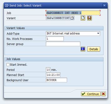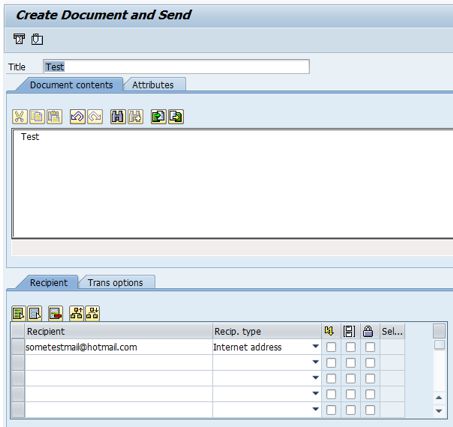 Afterwards, go to the SAP Business WorkPlace (transaction SBWP), and create a new document. Enter any e-mail address as recipient, and set the recipient type Internet address. Send the document, and wait for the next job run. The e-mail should then be delivered to the recipient.